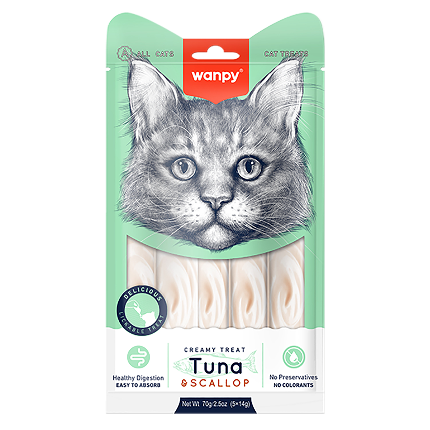 Побалуйте свою кошку чистым удовольствием с Wanpy крем-лакомство — тунец и гребешок. Сделанные из 100% настоящего тунца и краба, эти лакомства без зерна — идеальный способ сблизиться с кошкой. Без искусственных красителей, ароматизаторов и консервантов они обеспечивают чистую, полезные вещества в каждой порции.
