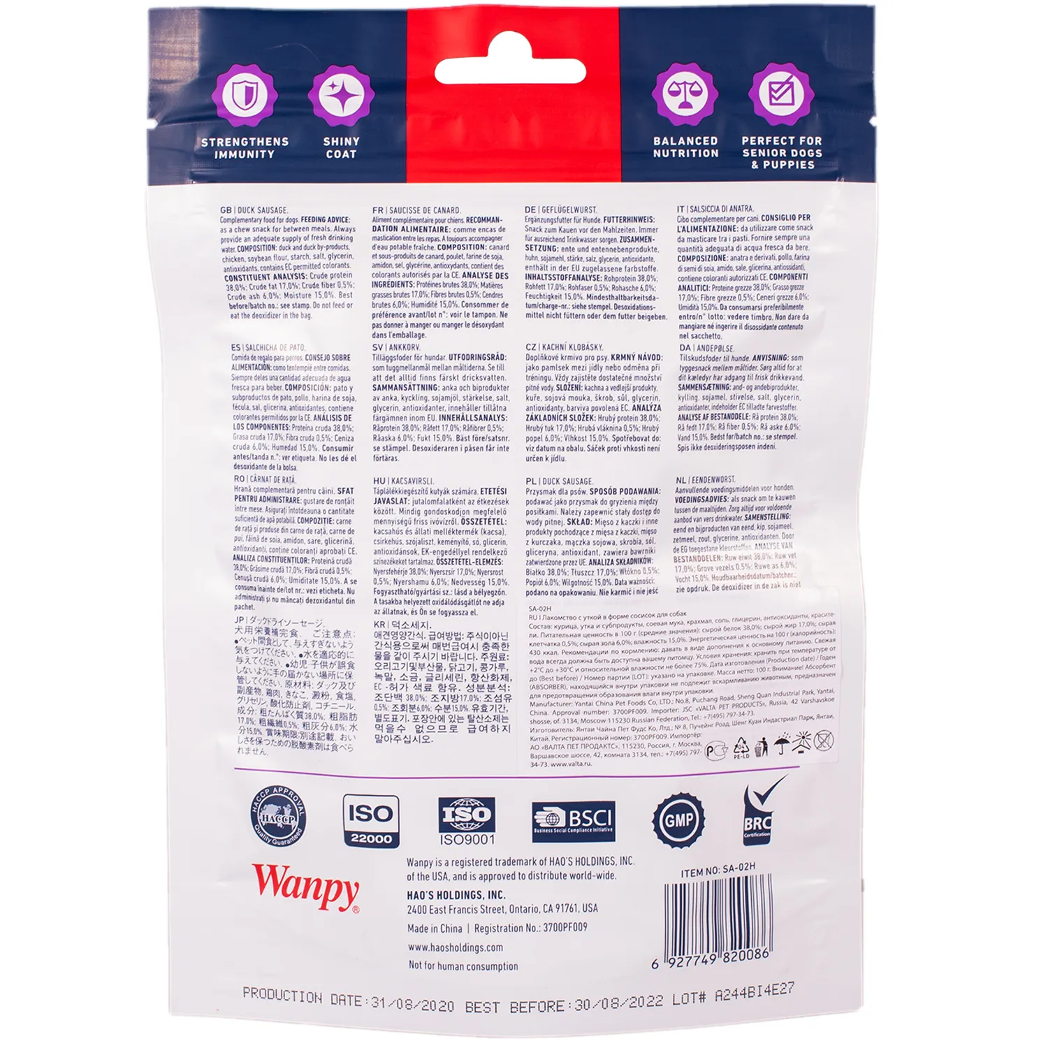 Состав: утка и утиные субпродукты, курица, соевая мука, крахмал, соль, глицерин, антиоксиданты, содержит разрешенные ЕС красители.